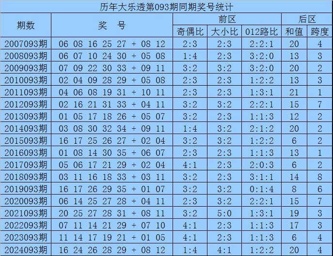 袁智囊体彩大乐透第2025093期历史同时奖号分析:
